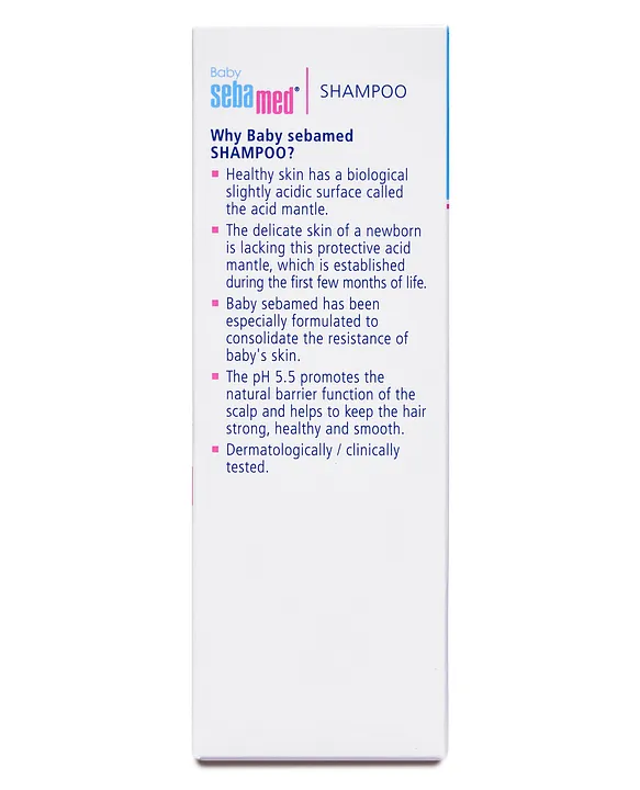 For the delicate scalp and fine hair of babies and children from birth to adolescence. Baby sebamed Children's Shampoo with its pH value of 5.5 promotes the development of the scalp's physiological acid mantle. The alkali free mild emollient formula is the ideal care for the hair and scalp of babies and children. Its gentle cleansing action minimize the risk of dryness or irritation due to the excellent skin tolerance. Herbal extracts from fennel, yarrow, melissa, mistletoe and camomile alleviate irritation and soothe the skin. Baby sebamed Children's Shampoo leaves the hair fragrant, silky and easy to comb. Promotes a healthy scalp for the growth of healthy hair. Free of colorants, nitro-mochus compounds, formaldehyde, nitrosamines and dioxin.